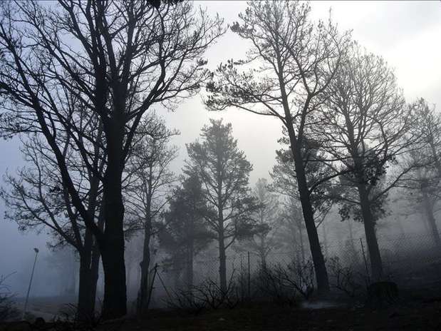 El panorama tras un incendio,desolador,con lo que era antes un jardín de vida convertido en un montón de cenizas en las que sólo los esqueletos de los árboles quemados queda en pie.